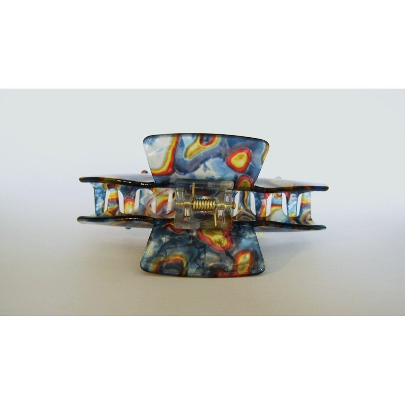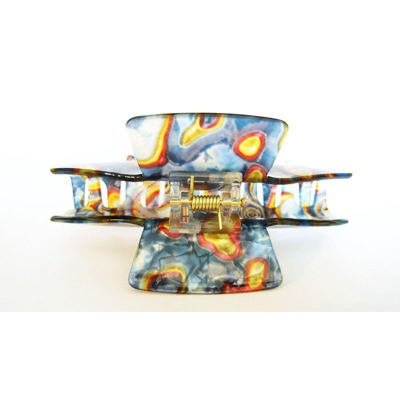 This blue green and gold hair claw has the look of abalone sea shell and is really stunning.