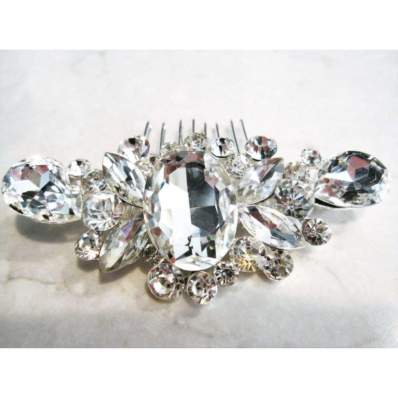 Generic Crystal silver hair comb barrette clip bridal clip silver bridal barrette, 4