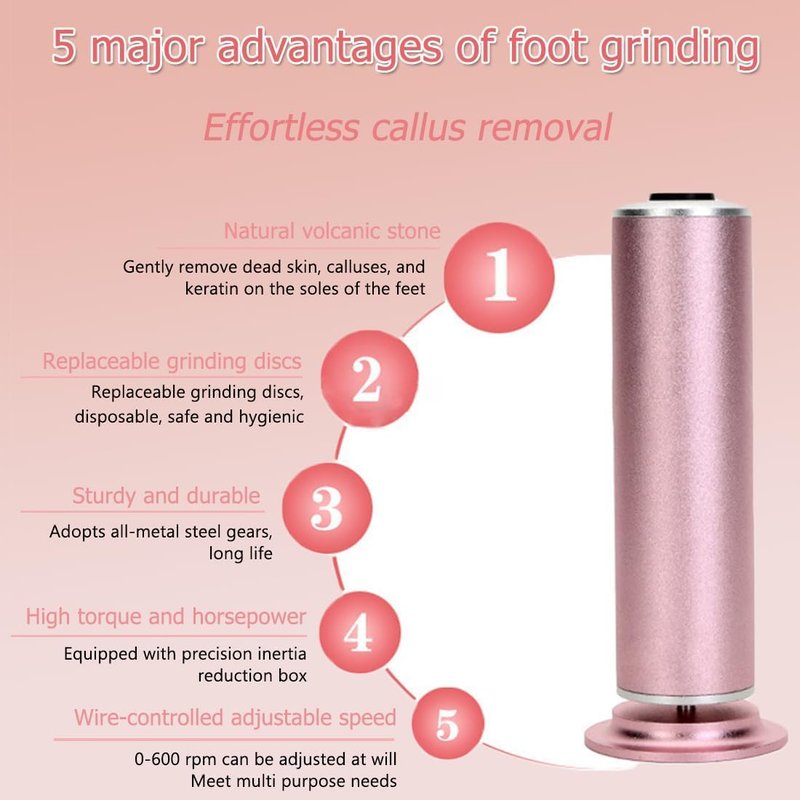 Features: Powerful motor, adjustable speed settings, replaceable sanding discs, ergonomic design, rechargeable Usage: Ideal for removing calluses, dead skin, and cracked skin from feet