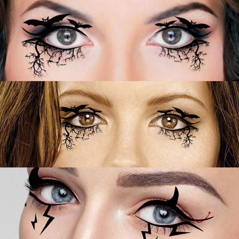 - Design: These eyeshadow stickers are designed in many different Halloween shapes, such as bats, spider webs, skulls, trees of death, and more,the black style is classic and glamorous, adding mystery to your party
