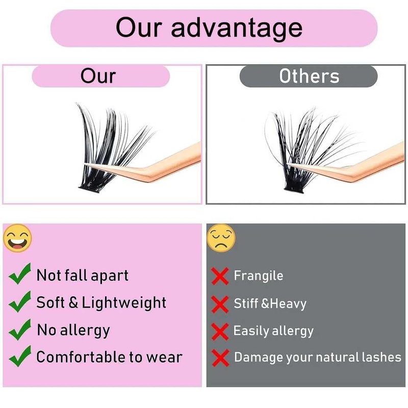Generic False Eyelashes Cluster with 0.8mm-14mm mix Curl, Light Lashes Brand, 30D-40D Shape, Individual cluster eyelash,70 roots, Black