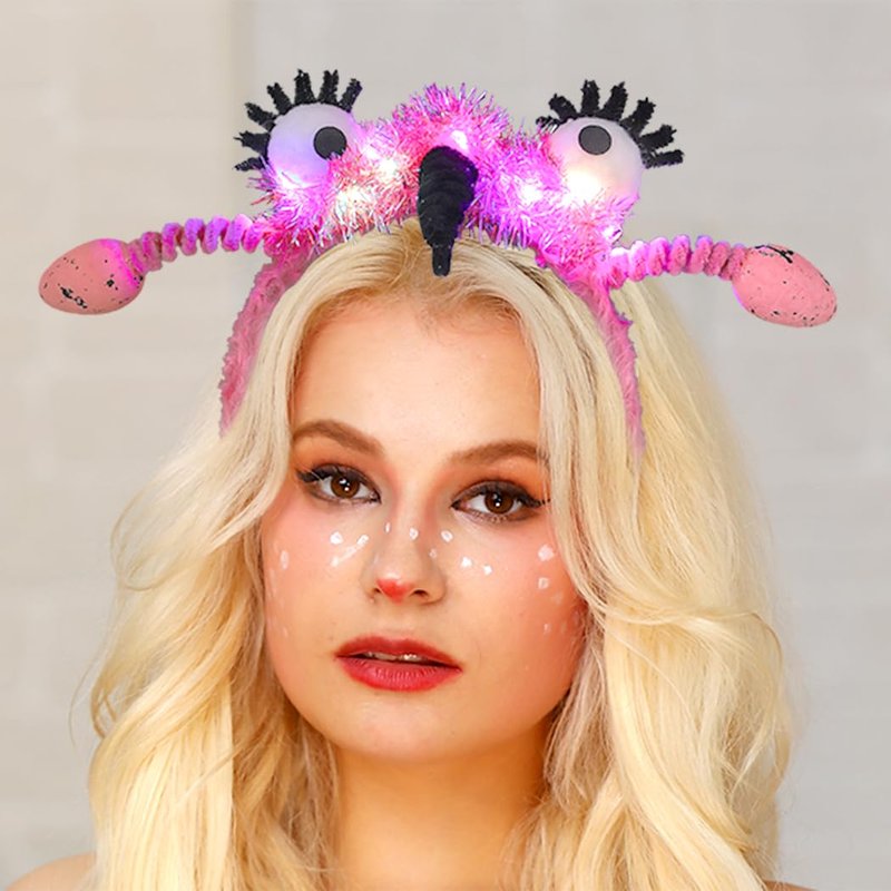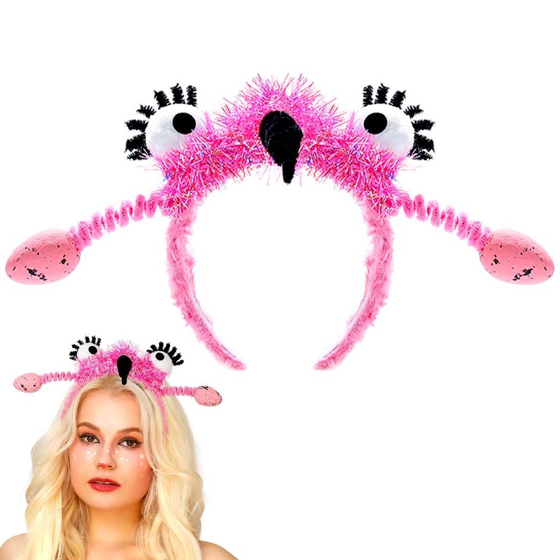 Generic Funny Headband Flamingo Hair Band Antenna Elastic Wings Headbands Alien Animal Eyes Costume Accessory For Women Kids Pink (Animal Print C), standerd