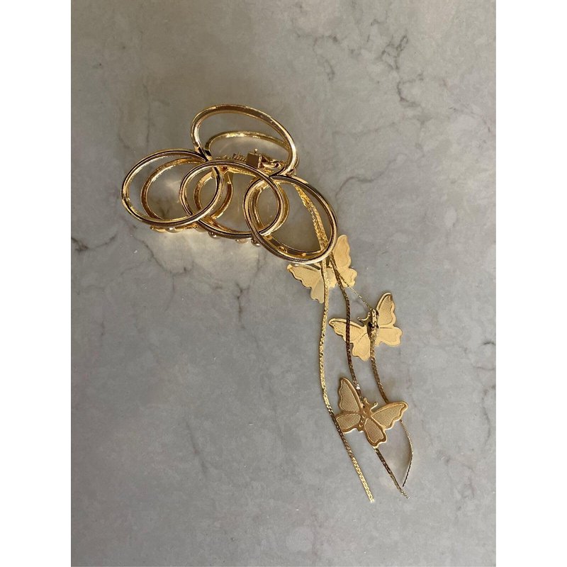 Generic Gold metal chain link infinity hair claw clip (Pattern: With butterflies), 1 Count (Pack of 1)