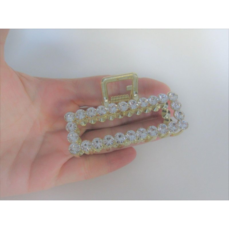 Generic Gold metal rectangle shaped crystal hair claw clip