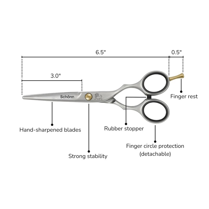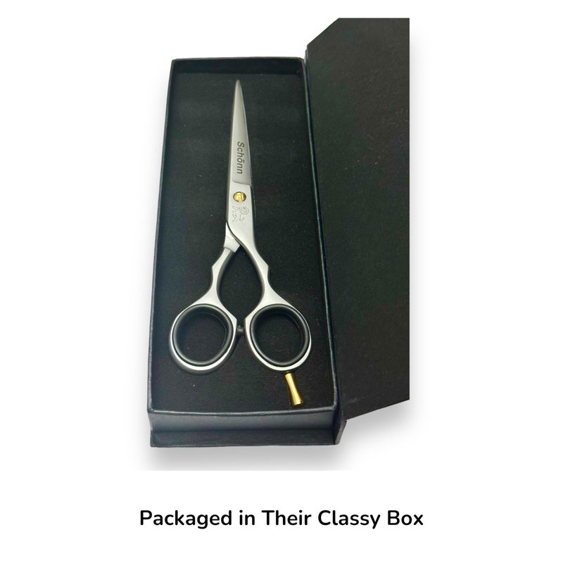 Schönn Hair Cutting Scissors epitomize the epitome of hairstyling excellence, meticulously fashioned from the highest quality German stainless steel, a material renowned for its exceptional strength, durability, and corrosion resistance. At Schönn, we pride ourselves on crafting tools that not only meet but exceed the expectations of professional stylists and barbers worldwide. With meticulous attention to detail and an unwavering commitment to quality, our 6.5-inch right-handed barber shears stand as a testament to our dedication to excellence in craftsmanship. When it comes to achieving impeccable haircuts, precision is paramount, which is why each pair of Schönn Hair Cutting Scissors is hand-sharpened to perfection. Our skilled artisans painstakingly hone the blades to razor-sharp edges, ensuring smooth and precise cuts with every snip. Whether you're creating intricate layers, precise angles, or sleek finishes, you can trust Schönn Hair Cutting Scissors to deliver flawless results time and time again.
