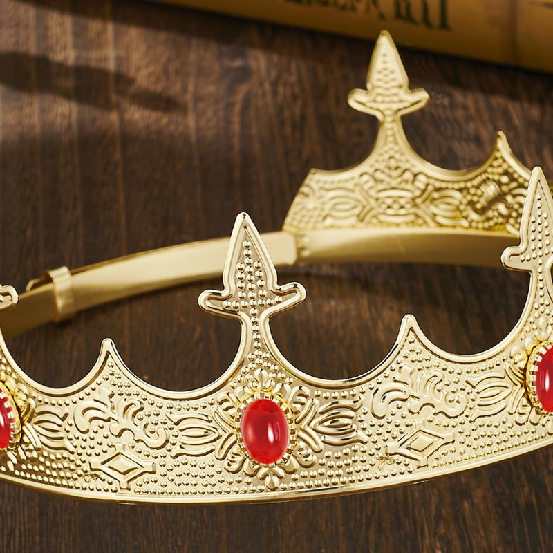 Generic King Crowns Metal Hair Band for Men Gold Crowns and Tiara for Theme Birthday Party Costume Accessories (Gold), Golden Ruby