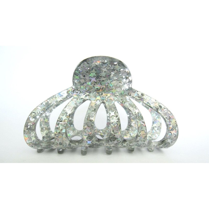 Generic Medium silver colorful glitter stars marbled hair claw clip