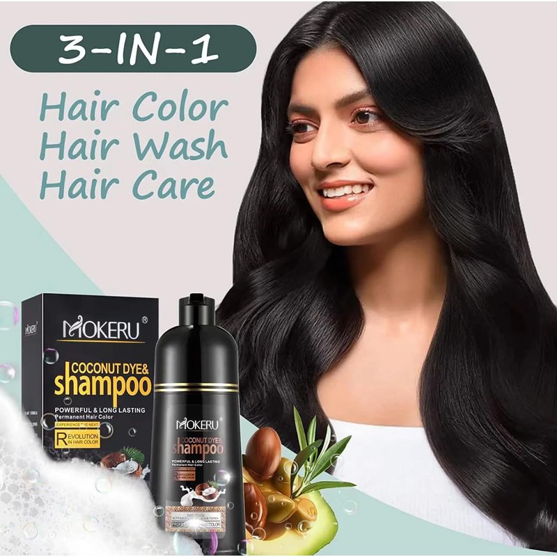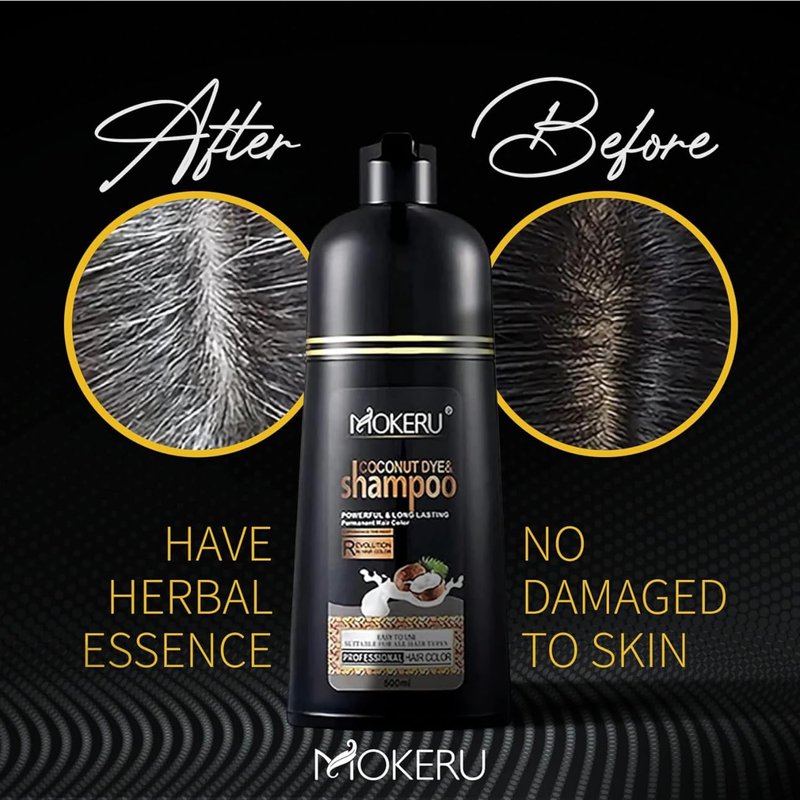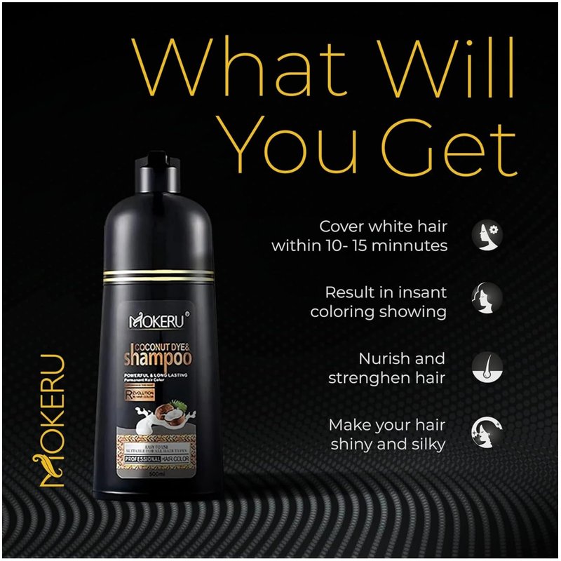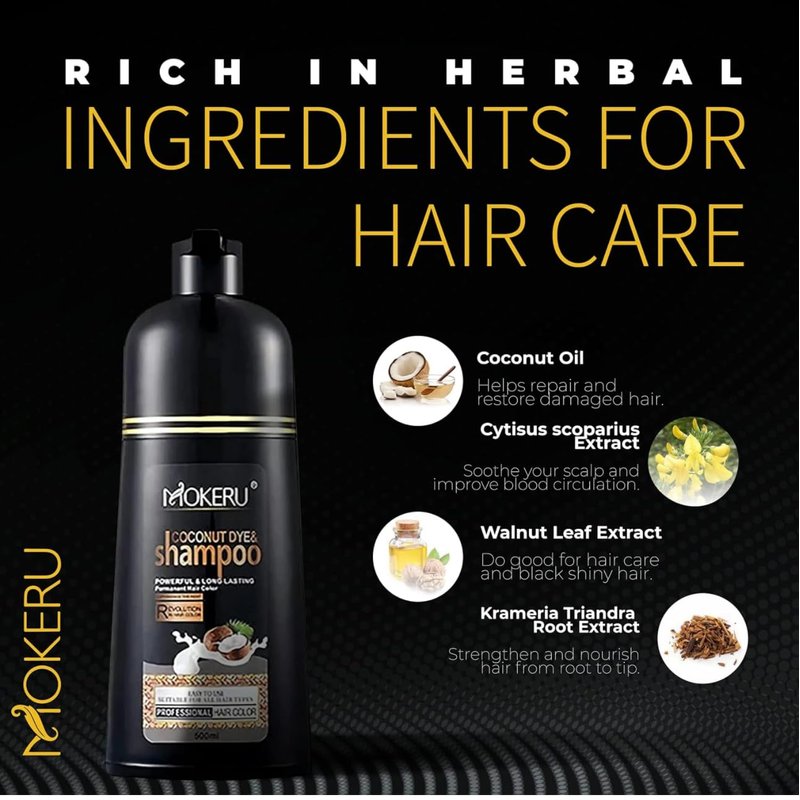 MOKERU Professional Argan COCONUT Oil Hair Dye Color Shampoo 500 ML. Professional And Long Lasting Permanent Hair Color Colors Available: Light Brown Dark Brown Wine Red Chestnut Brown Blonde Brown Natural Black PRODUCT DESCRIPTION: MOKER coconut color shampoo is newly upgraded formula, which uses natural oil essence to color, clean & condition hair. The coconut oil effectively repair hair & makes hair healthy. It can enhance natural color & boosts shine. Mokeru coconut color shampoo can help you to achieve Phenomenal long lasting hair color almost instantly. INGREDIENTS: Coconut Oil, Juglans Regia (Walnut Leaf Extract), Cytisus scoparius Extract, Krameria Triandra root Extract, Water, Glycerine, Propylene Glycol, AMP Acrylates/ Allyl Methacrylate Copolymer, PEG 400 Hydrogenated Castor oil, Triethanolamine, Cetearyl Alcohol, Polydimethylsiloxane, Acrylates C10-30 alkyl acrylate crosspolymer, ammonium polyacralate, Polyvinylpyrrolidne, Bismuth Citrate, C177499, Ethylhexyglycerin Important safety warpin ¿perform an allergy alert test 48 hours before ench time you color even if you have already sed coloring produots before. so remember buy the product 48 hours in advance. cautio hair colorants can cause severe allergic reat ons,read and follow instructions this product is not intended for use on persons under of "black henna" tattoos may increase your risk of allergy, do not color your hair if, -you have a rash on your face or sensitive mitated and damaged scalp,-you have ever excerienced any rash after coloring your hair rinse hair well after application.avoid contact with eyes rinse eyes immediately if product comes into contact with them, wear suitable gloves keep out of reach of