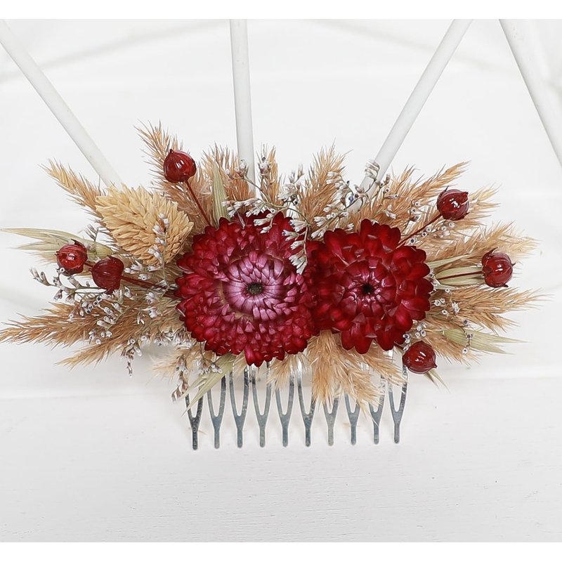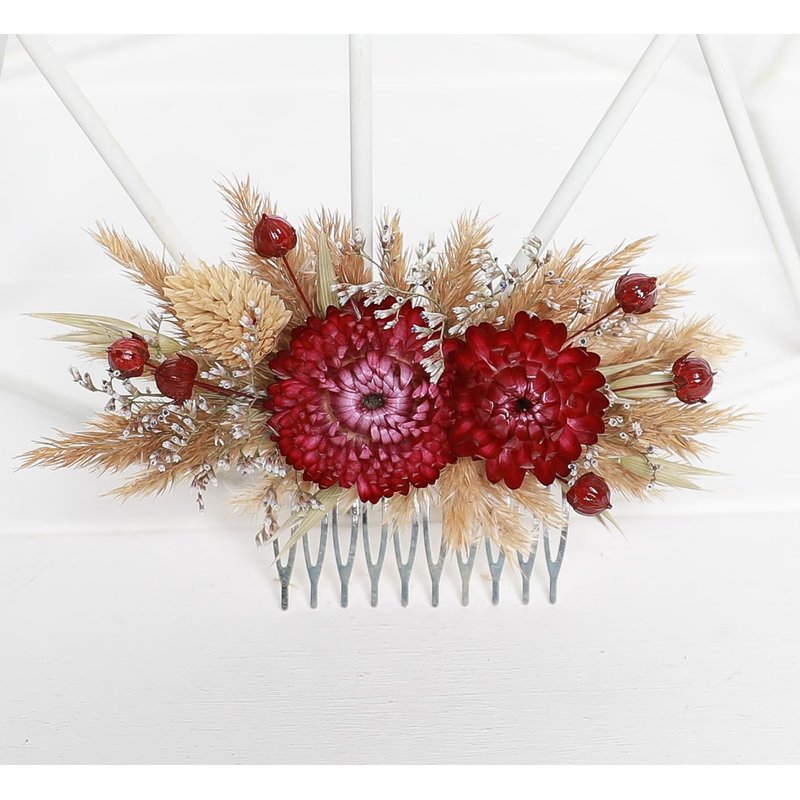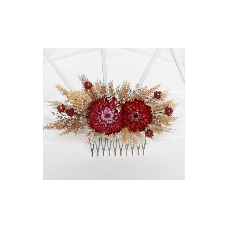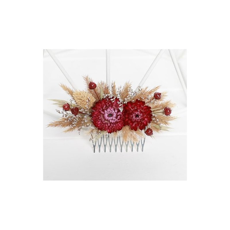 This handmade hair piece will be the perfect solution for your every day look. With such a handmade comb you will feel unique, inimitable and special. Handmade hair comb made from natural and artificial materials. The comb is made from creamy natural dried pampas grass, natural dried flowers. PLEASE NOTE: This is a handmade item, handmade item may vary slightly from photo. Look at the photos showing several products, you can see that there is a slight difference in each product. A handmade product made from dried flowers will be unique (dried flowers may vary slightly in shape and appearance), so be prepared that the product may differ slightly from the sample photo. CARE: Dry flowers last a couple of years. Keep dry flowers out of direct light, sunlight, heat or humidity. remove dust periodically with a cold blower of a hairdryer. Slight shedding of dried flowers is acceptable! Don't need water