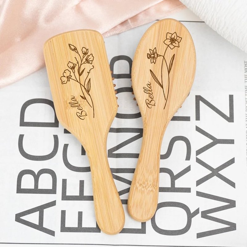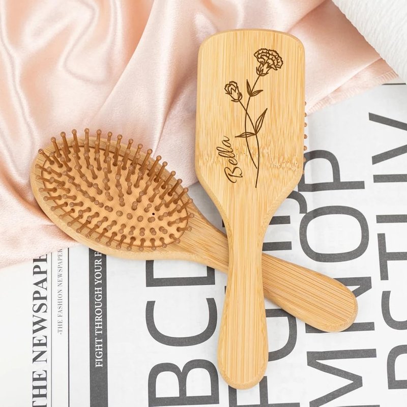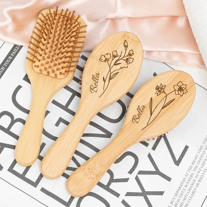 Generic Personalized Bamboo Brushes for Women Custom Name Hair Brush Bridesmaid Hairbrush Detangling Brush For Curly Hair Thick Hair Birthday Gift for Wife Mom Grandma Friends Sister Her