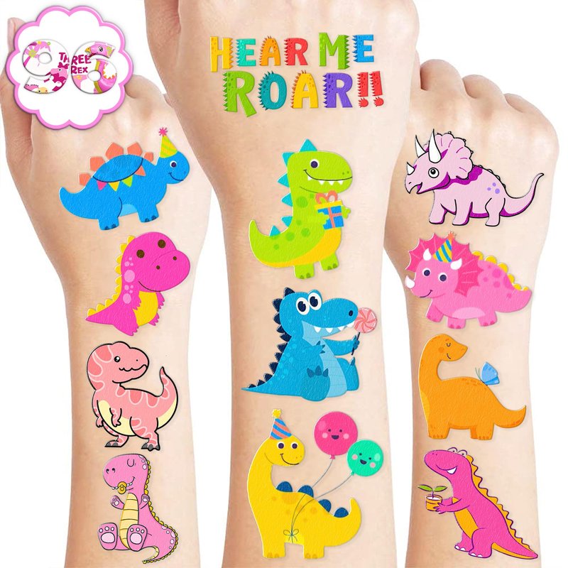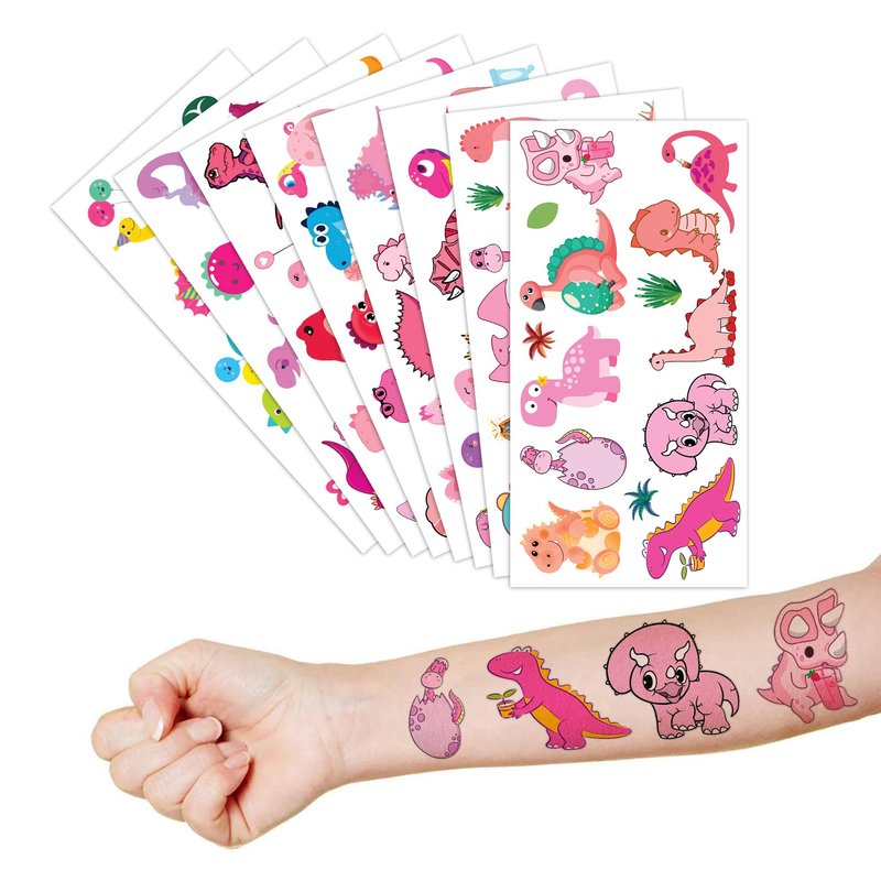 - 🦕【IDEAL TATTOOS FOR THEMED PINK DINOSAUR DECOR】: This set of temporary Pink Dinosaur-themed tattoo stickers comprises 8 sheets in total, featuring a total of 96PCS striking, distinct designs. They are excellent for distributing as party favors and small gifts with a Pink Dinosaur theme for holidays. Each sheet measures 6.1 * 3.1 inches, making them suitable for boys and girls of all sizes.