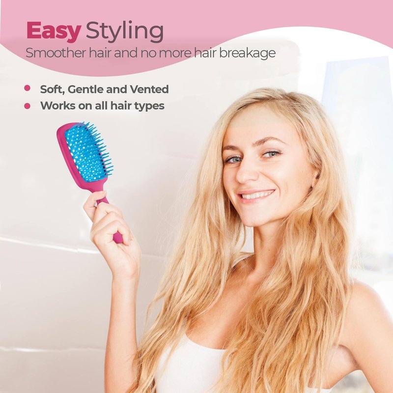 - Soft bristles for gentle detangling without pulling hair or breakage