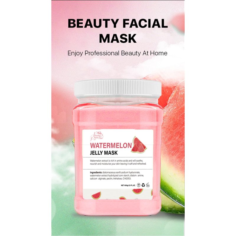- REFRESHING WATERMELON INFUSION: Indulge your senses with the refreshing essence of watermelon in our specially crafted jelly powder face mask. The delightful aroma of watermelon adds a sensory dimension to your skincare routine, creating a truly enjoyable and revitalizing experience. Immerse yourself in the invigorating fragrance as you pamper your skin with the nourishing benefits of our peel off jelly mask formula.