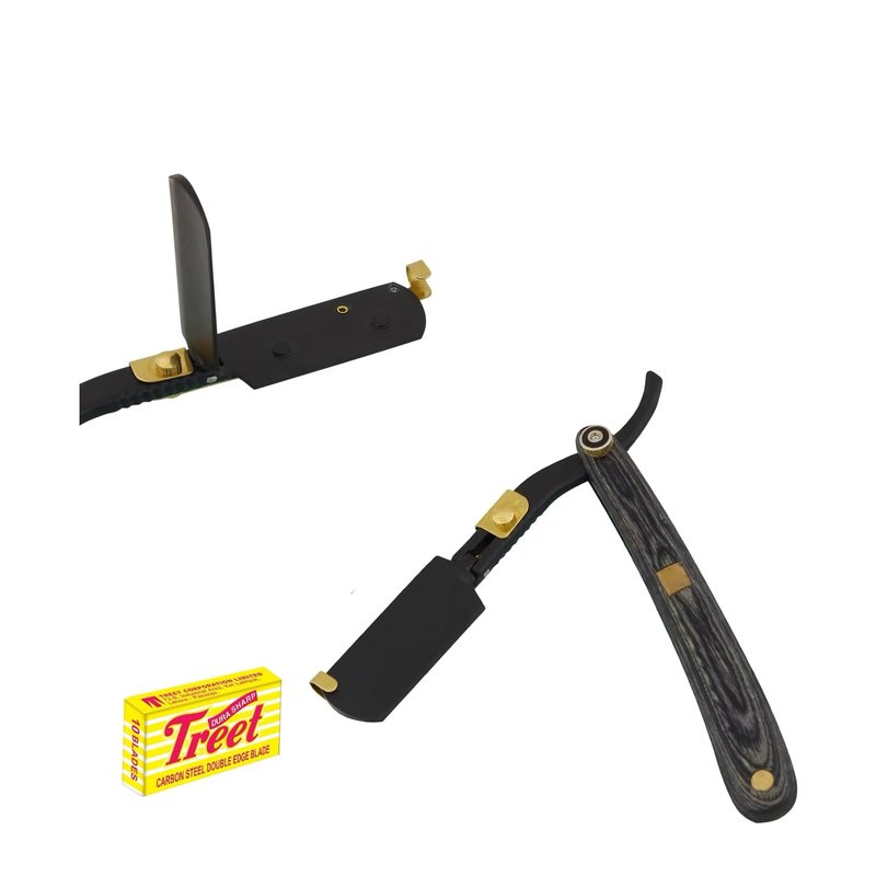 Professional Grade Straight Edge Handmade Shaving Razor in Stainless Steel, Black, and Gold, New Wooden Design Black and Gold