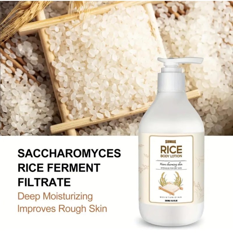 - Effectively hydrates and nourishes the skin with the Rice Extract Body Lotion and soap which contains 8% of the highest quality rice bran oil that enriched with essential antioxidants, fatty acids, and Vitamin E to moisturize, nourish, and silken your skin. The non-greasy formula body milk absorbs instantly into your skin leaving it silky