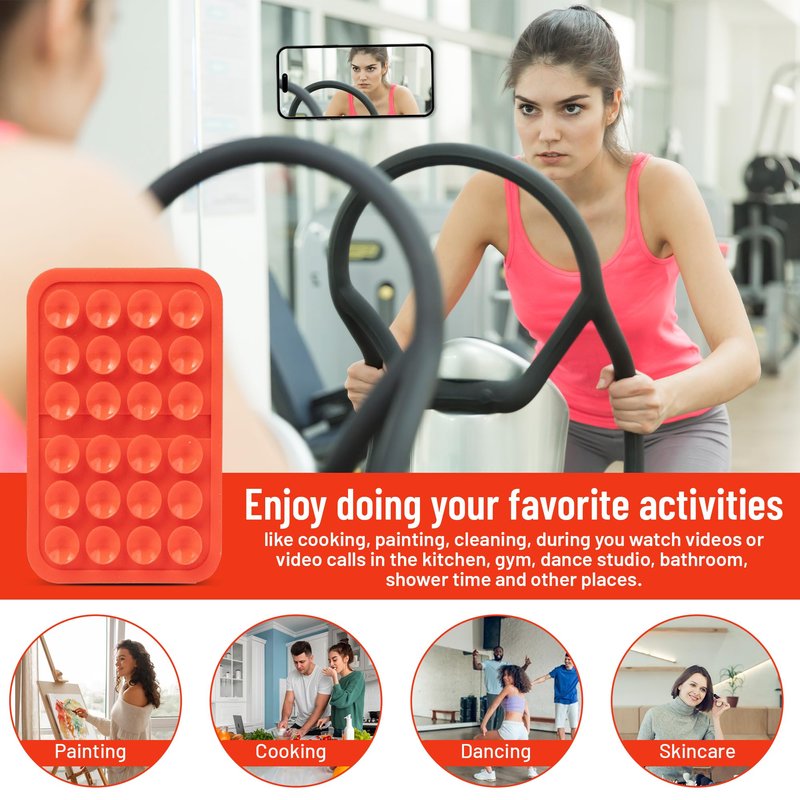 - ♥ Suction Cup Magic: Featuring strong suction cups, this phone holder sticks securely to various surfaces, including your shower! It's a waterproof phone holder, great for yoga enthusiasts and dancers who love capturing every move.