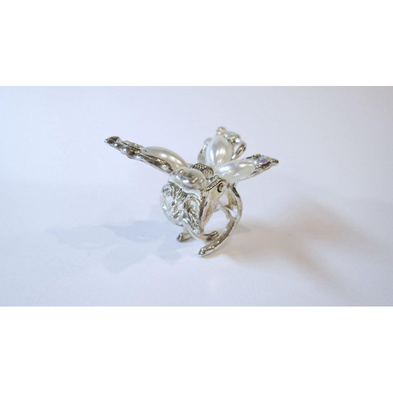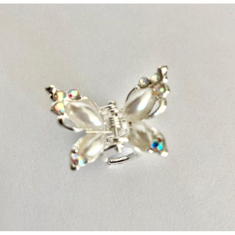 Generic Small mini silver and white pearl metal butterfly hair claw clip with crystals