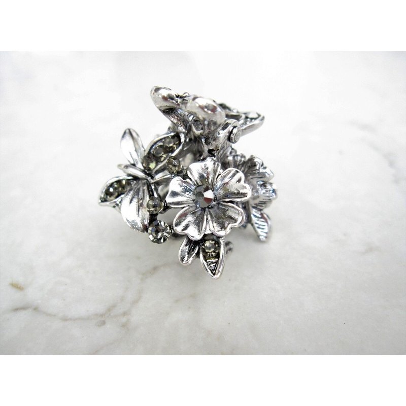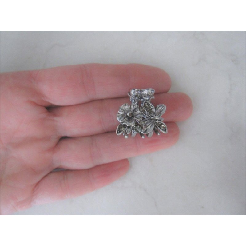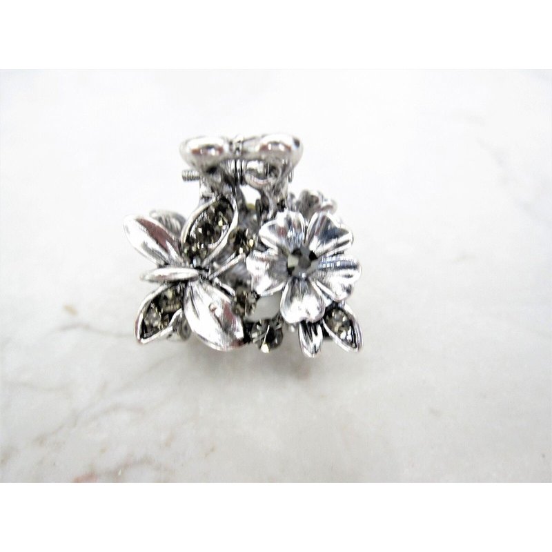 Generic Small mini silver metal gray flower butterfly crystal hair claw clip bridal clip