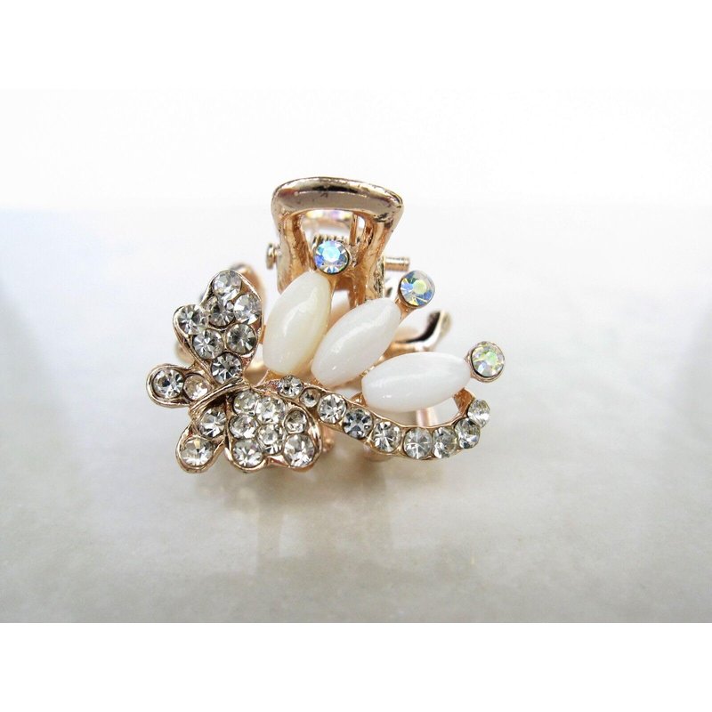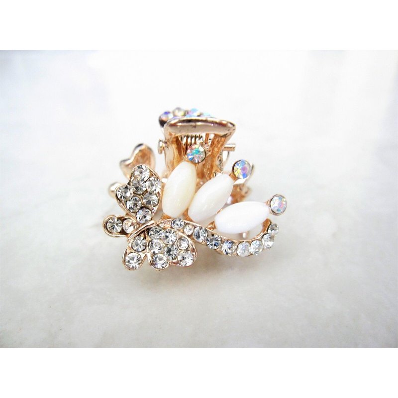 Generic Small pearl and crystal butterfly gold hair claw clip bridal clip bridal