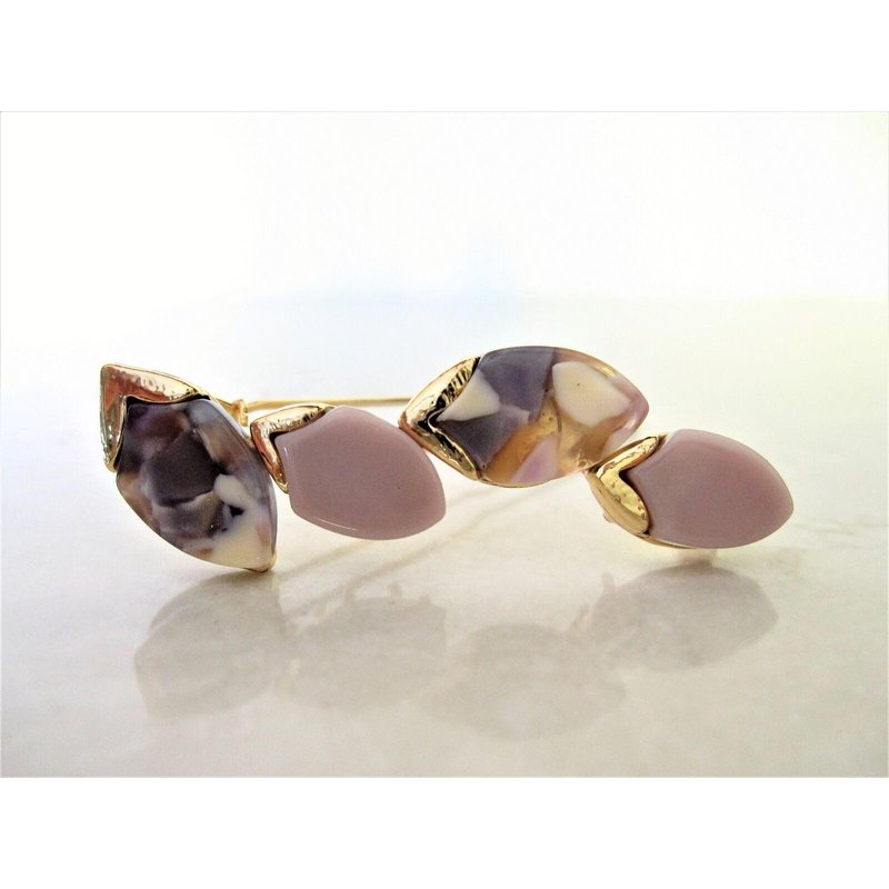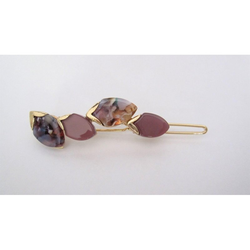 Beautiful gold metal hair clip with polished stones. This clip is about 2 inches long and 1/2 an inch in height.