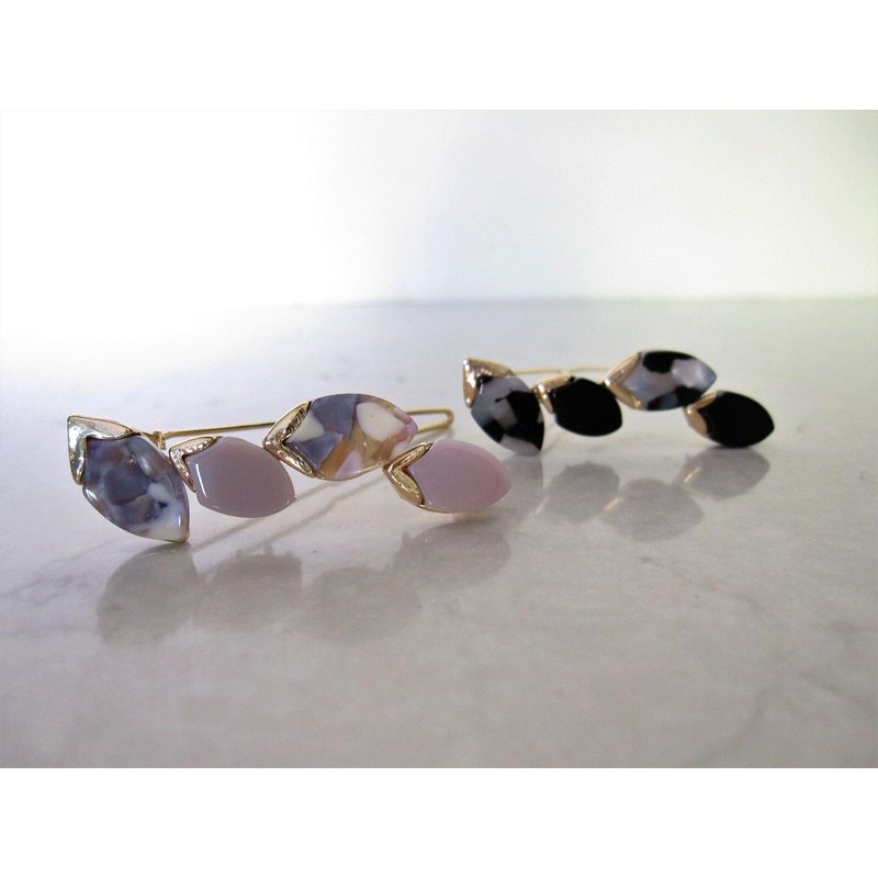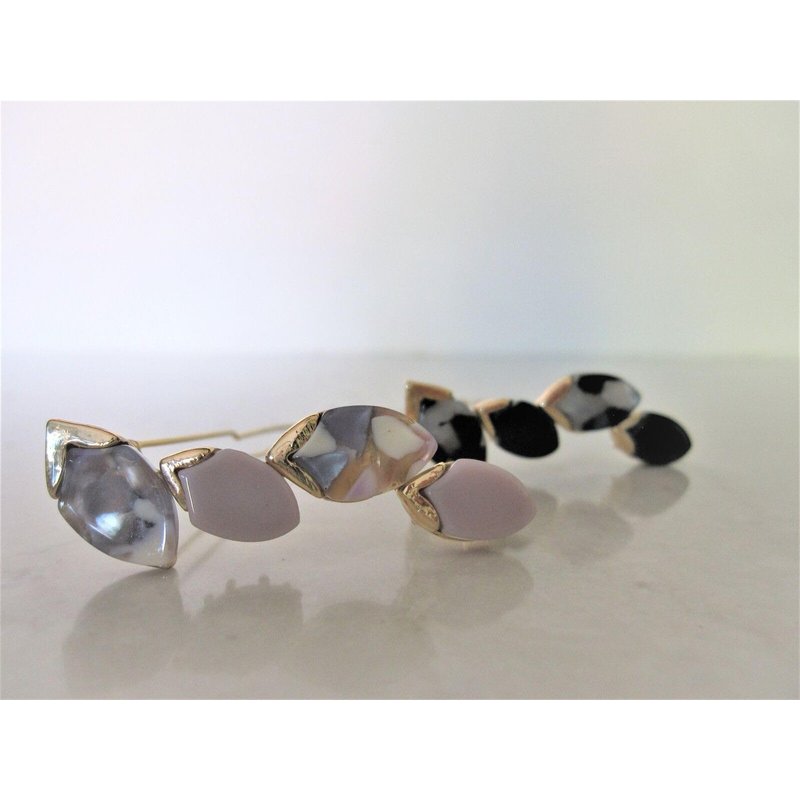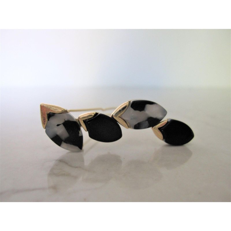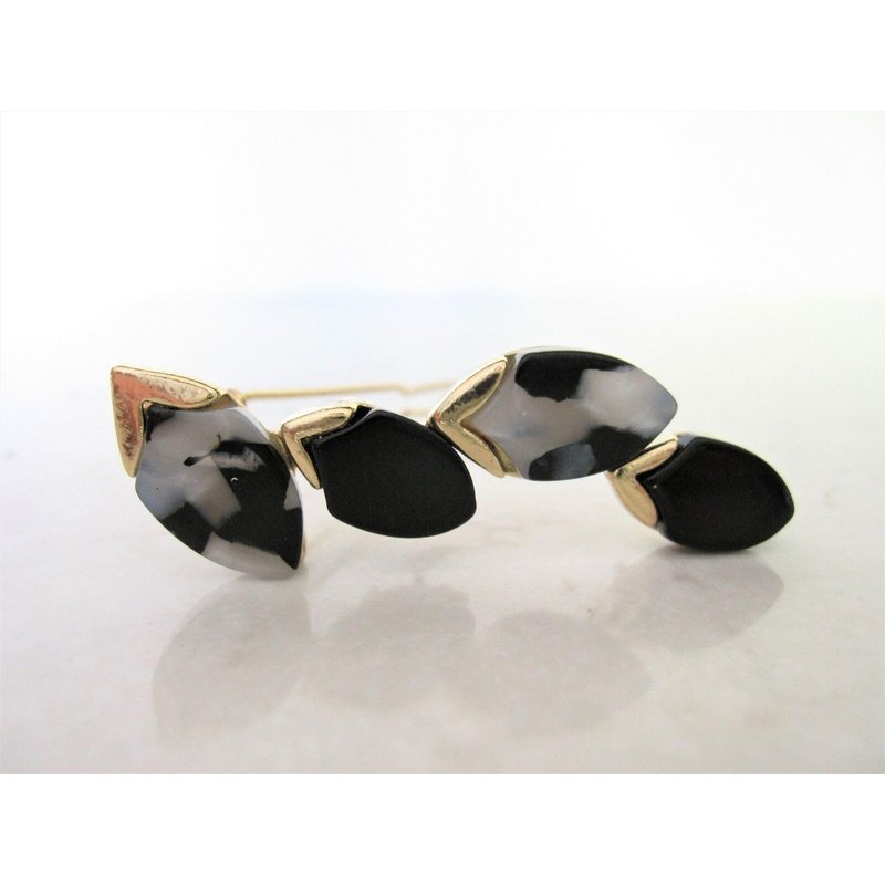 Generic Small polished stone gold hair barrette clip for fine thin hair (Primary color: Black), 1 Count (Pack of 1)