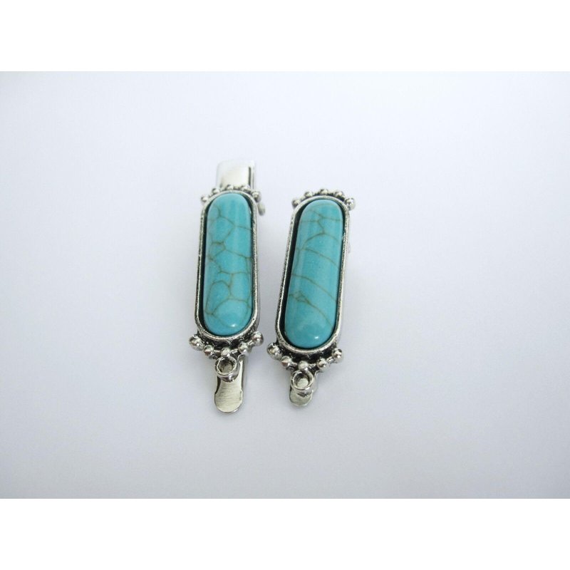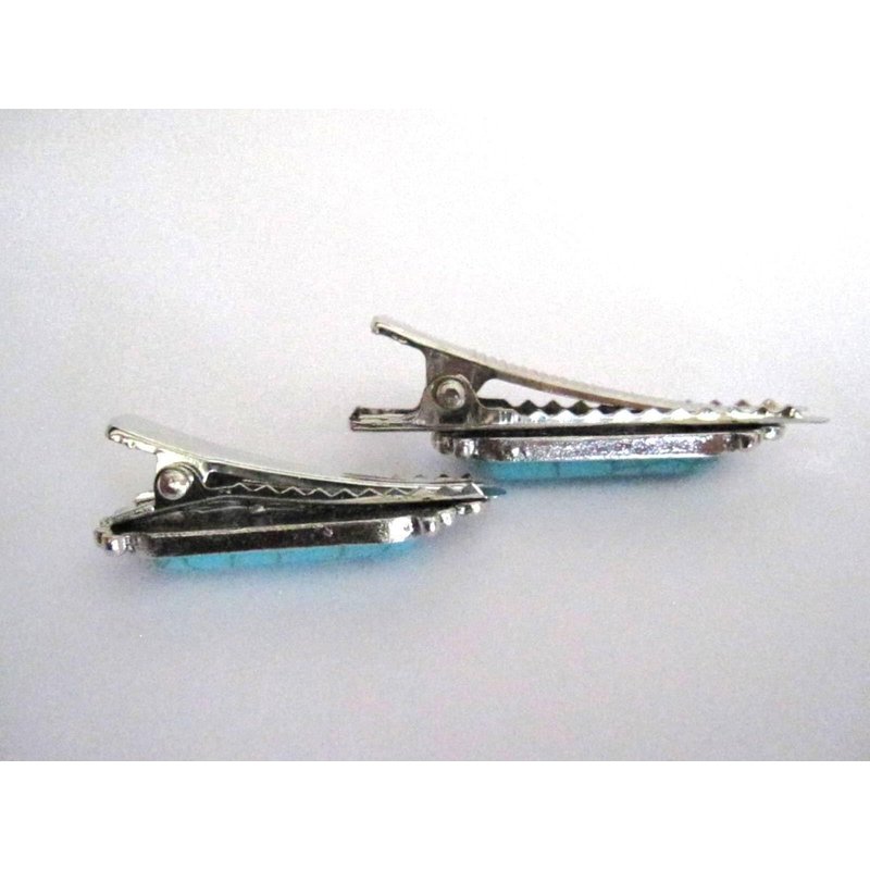 Generic Small turquoise blue stone silver metal alligator hair clip fine thin hair (Size: 1.25)