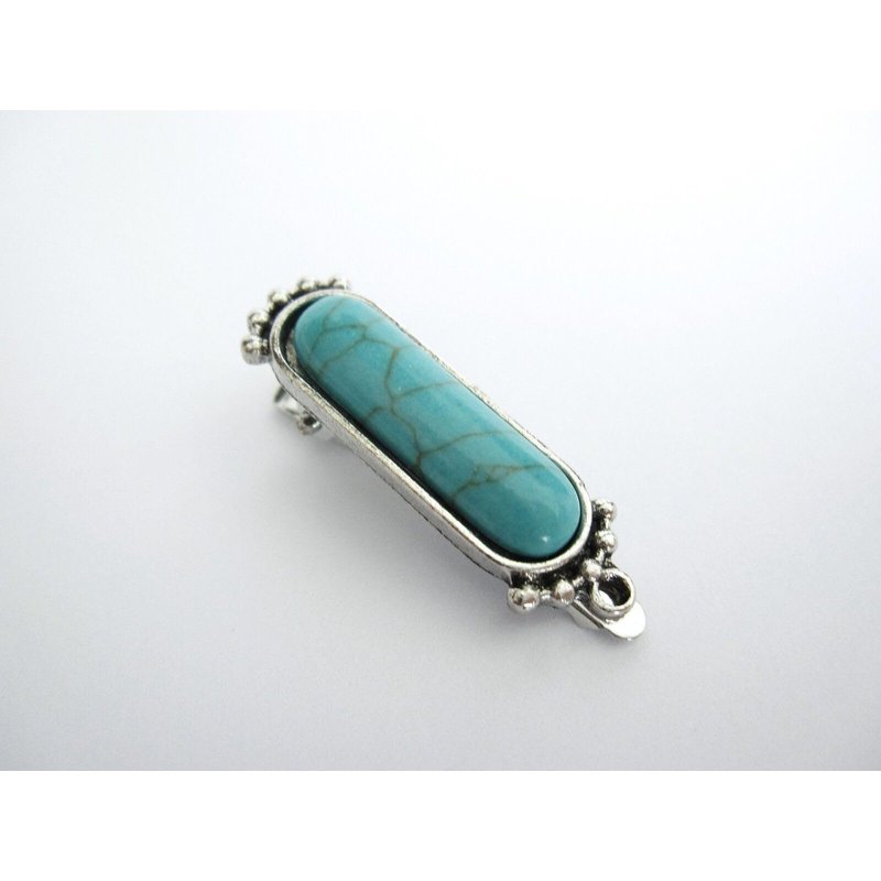 This is a metal hair clip with a turquoise colored stone and metal beads.