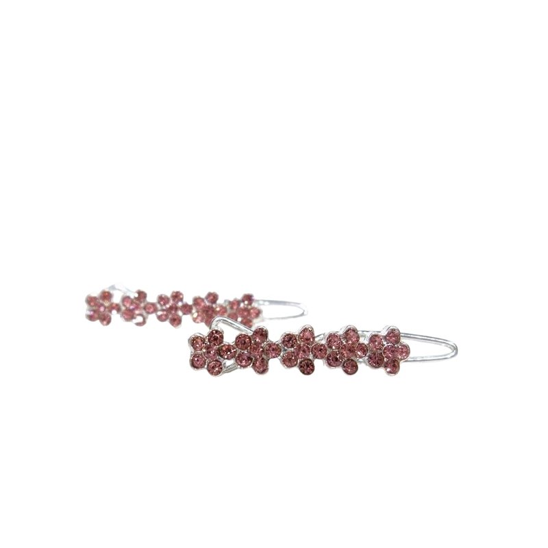 Generic Two small tiny pink flower crystal hair pin clip barrettes fine hair