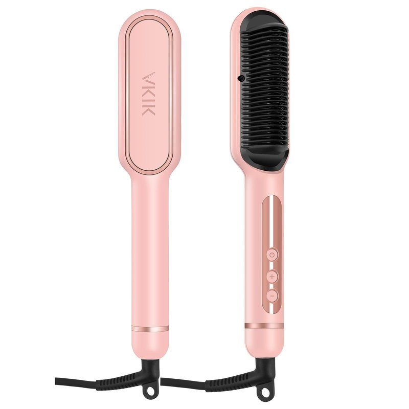 - 【Adanced Technology】Features fast heating and negative ions: the VKIK hair straightening brush seals the hair cuticle, locks in the hair's natural moisture, eliminates frizz, split ends, and knots, adds shine, repairs hair damage, and creates soft, silky, naturally shiny hair.