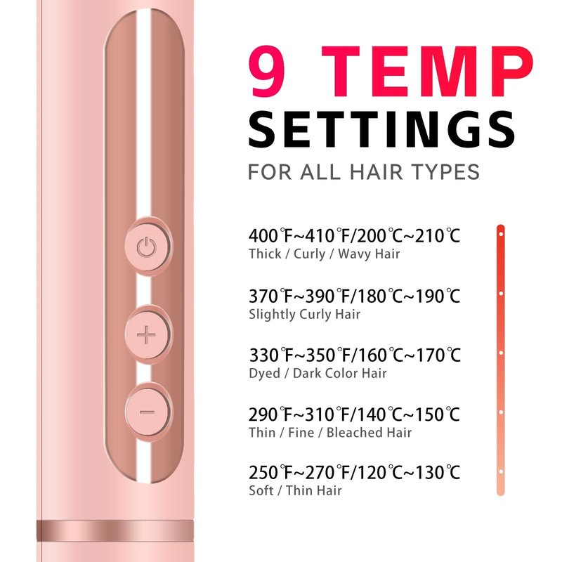 - 【Hair Temperature】240 degrees Fahrenheit to 280 degrees Fahrenheit for soft and fine hair, 300 degrees Fahrenheit to 320 degrees Fahrenheit for bleached and dyed hair; 340 degrees Fahrenheit to 360 degrees Fahrenheit for normal slightly de-curled hair. 380 degrees Fahrenheit to 410 degrees Fahrenheit for coarse, curly hair.