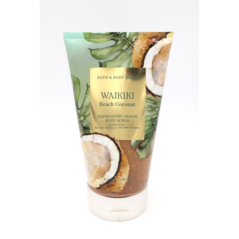 Fragrance: Waikiki Beach Coconut / Fragrance Notes: Tropical White Coconut, Saltwater Breezes, Sun-Bleached Woods / Exfoliating Beach Body Scrub with Walnut Shell and Coconut Water / Size: 6.6 (187 g) / Dermatologist Tested & Made without Sulfates or Parabens / Not Tested on Animals & Vegan