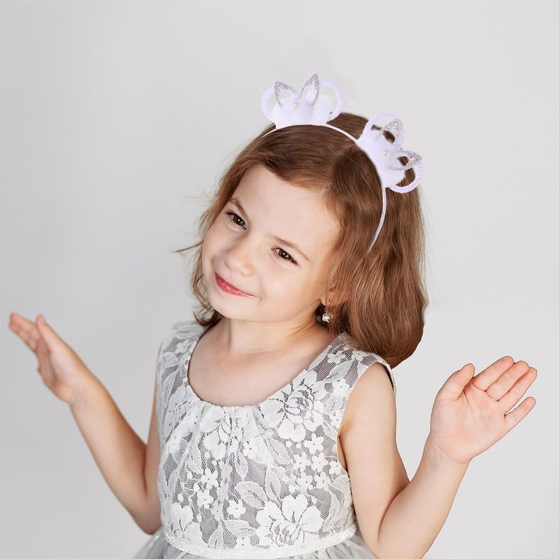 Generic White Cute Headband for Girls Sequin Bow Glitter Headbands Bunny Pom-pom Hairband Rhinestone Hair Princess Party Favors Women