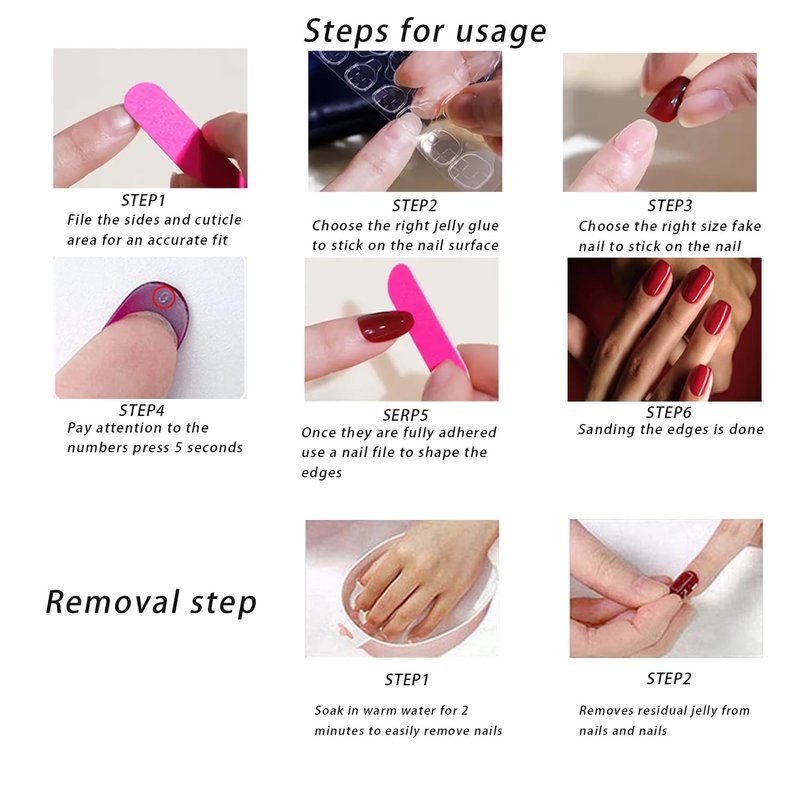 - 【Lasting Effect】You can use the nail glue sticker we give away ( use nail glue sticker, fake nails can be reused ), but the nail glue sticker is not as good as liquid glue, if you want to last longer, please use liquid glue, the effect can last 1 to 2 weeks.