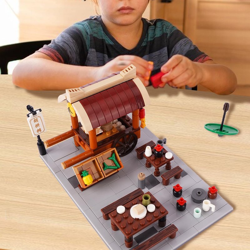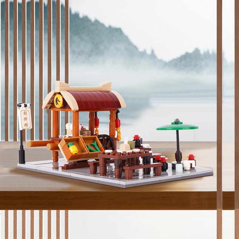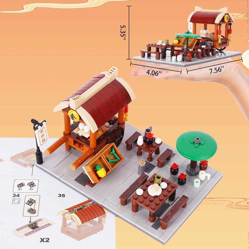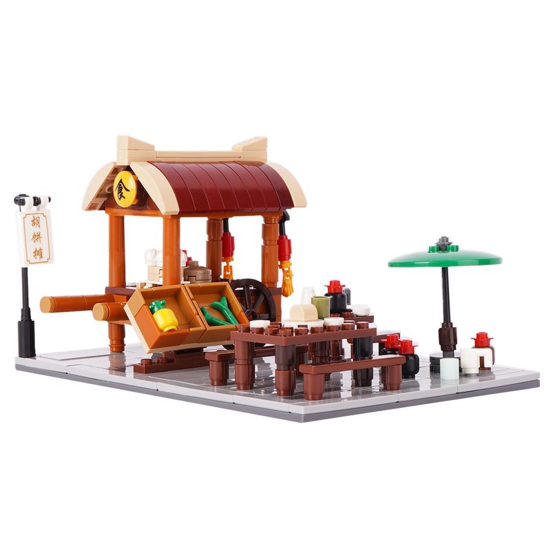 Geniteen Chinese Street View Shop Building Block Set, Creative DIY Micro Building Blocks Model Architecture Construction Toy, Gift for Kids and Adults (Food Stall)