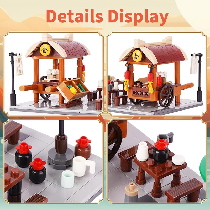 - Creative building blocks: Street view micro building block model including 6 types shops, so you can create a beautiful Chinese street scene.