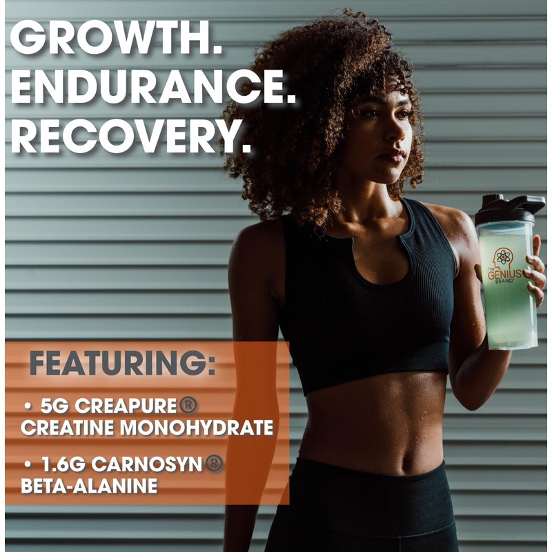 - Post-Workout Muscle Maximizer: Genius Creatine by The Genius Brand acts fast to recharge every cell and build muscle faster.* Each serving provides 5 g of German Creapure, an elite creatine monohydrate source, along with premium CarnoSyn Beta-Alanine to boost muscle function and performance and AstraGin for superior bioavailabilty.* Green Apple flavor. 25 scoops per container.