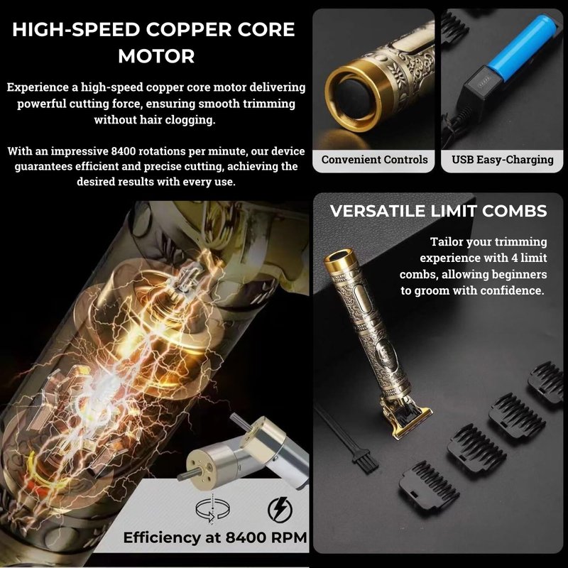 Introducing the Genkigold Hair Trimmer for Men, a cutting-edge grooming solution designed to redefine your hairstyling experience. Achieve precision haircuts with zero-gap technology, delivering professional-grade results from the comfort of your home. The cordless convenience of our rechargeable trimmer ensures unparalleled freedom during your grooming sessions, whether at home or on the go. Inspired by timeless aesthetics, our trimmer comes in three unique designs—Gold Buddha, Obsidian Gold, and Gold Dragon—adding a touch of sophistication to your grooming routine. Compact and portable, it's the ideal travel companion for maintaining your style wherever life takes you. Confidence is key, and our professional-grade trimmer empowers you to craft your desired look effortlessly. No compromises, just exceptional grooming performance. The Genkigold Hair Trimmer is not just a tool; it's a comprehensive grooming kit, offering versatility to switch between styles with ease. Elevate your grooming routine with the Genkigold Hair Trimmer—a perfect blend of precision, style, and convenience. Your journey to a groomed and confident appearance starts here.