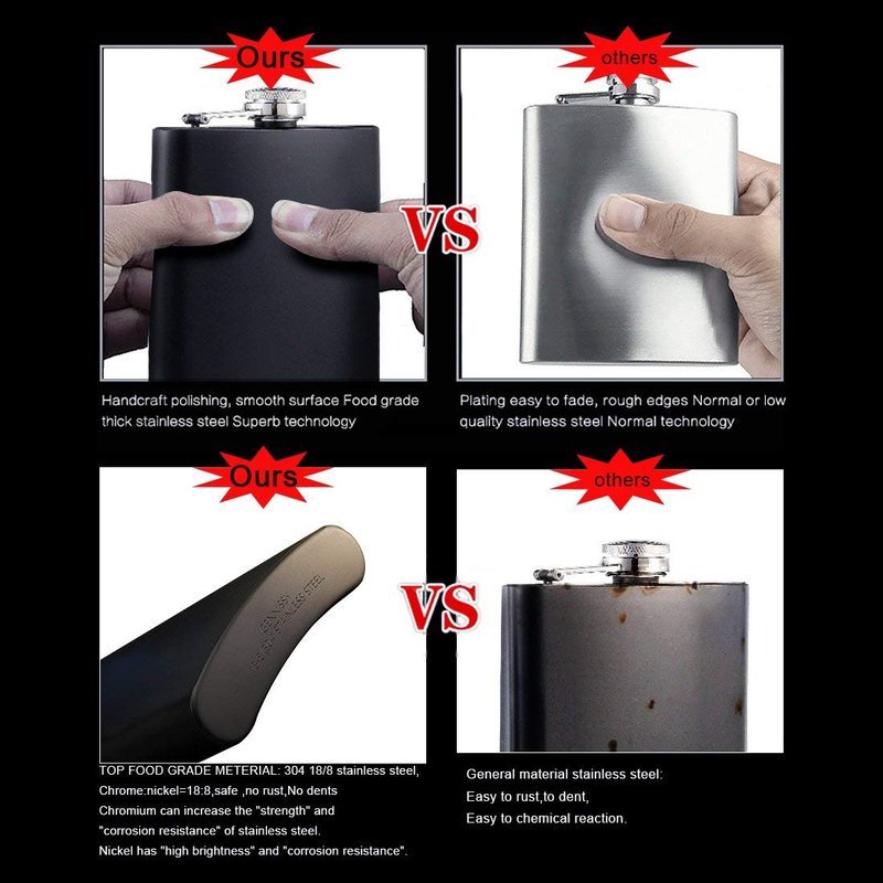 - 【18/8 STAINLESS STEEL】Hip flasks for liquor for men adopts high quality 18/8 305 stainless steel with unique durable laser welded hinge, the structure is very strong, the material is safe and non-toxic, stainless steel has good corrosion resistance, no need to worry about internal metal corrosion,hip flask gift set is light weight, small size, easy to carry