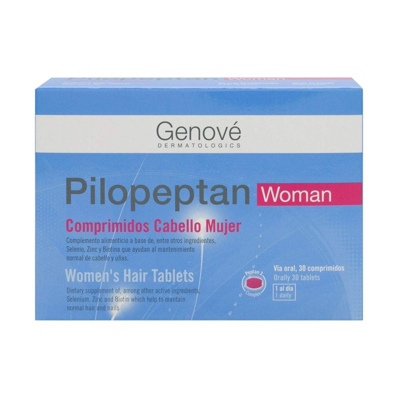 Genové Pilopeptan Woman Tablets have been exclusively formulated for keeping women's hair in a healthy condition. Women's fair loss is influenced by many factors, including genetic predisposition, hormonal disorders, hostile external conditions (changes in season), internal physiological changes (pregnancy, breastfeeding, menopause), etc., all of which may disrupt the normal intake of nutrients. Pilopeptan Woman tablets provide the recommended amounts of vitamins and minerals for women's hair. The Selenium, Zinc and Biotin intake provided by Pilopeptan Woman Tablets help keep hair in tip-top condition.