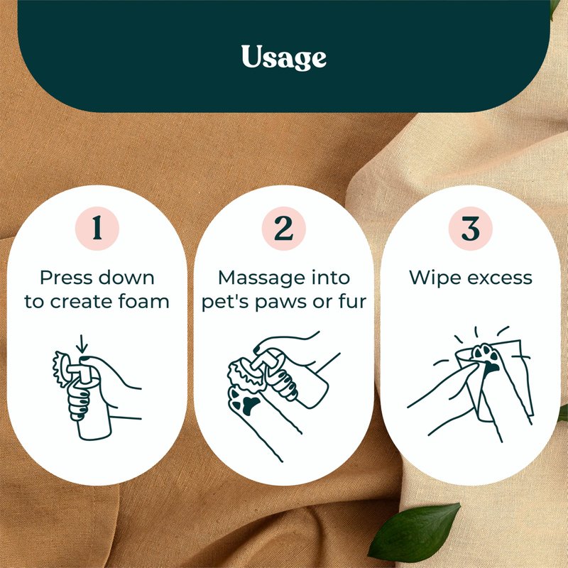 The easiest paw cleaner ever! If you're looking for a convenient no-rinse waterless shampoo and scrubber to use after daily walks or when your dog or cat's paws get dirty, then look no further. No more bulky water-based foot cleaners that get super dirty over time. Our simple and compact paw cleaner with silicon brush is just so darn easy to use that you may even enjoy cleaning your pet's paws. Simply pump a bit of foam, scrub their paw, and wipe the foam away. It's that easy. Place it just outside your front door to remember to wipe your pet's paws when you come inside. And fear no longer when your pet jumps up onto your beautiful white couch. You can use it for other areas too. Clean up a specific stained area if your pet got into trouble. Control their odor and smell without nasty fragrances. Our custom formulated Magic Foam is easy on your dog's skin with gentle cleaners and no fragrances. It is free of nasty chemicals so you can rest easy and curl right up next to your pet's clean paws.