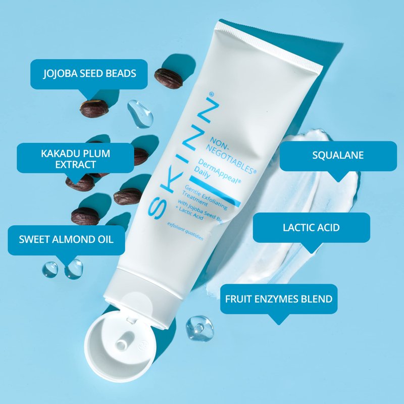 Gentle Exfoliating Face Scrub, Dermappeal Daily by SKINN - Anti-Aging Facial Treatment Exfoliator for Sensitive Skin with Jojoba Seed Beads & Lactic Acid, Smooths Wrinkles & Fine Lines