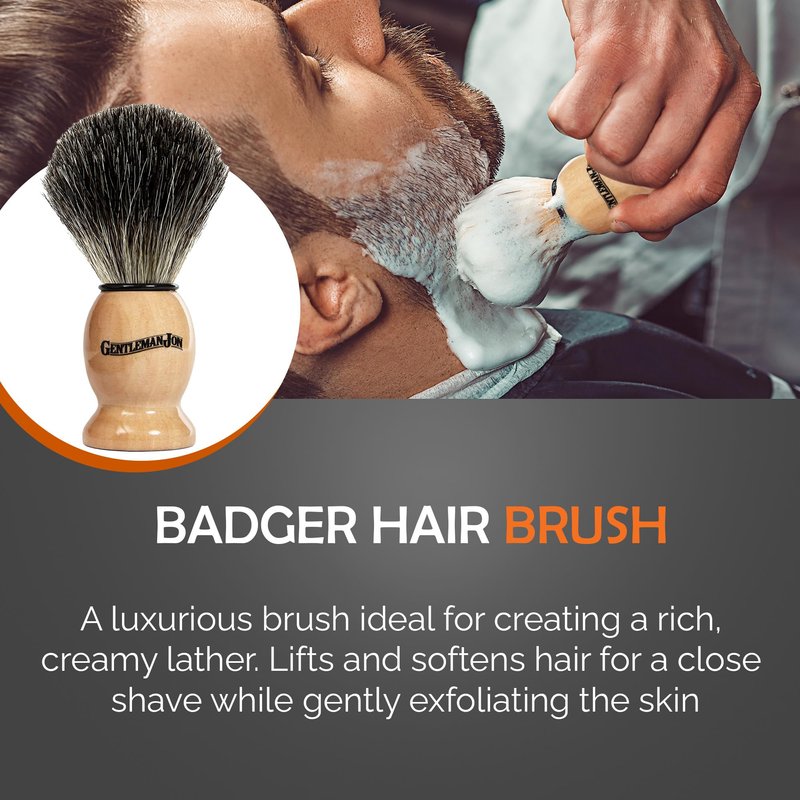 - UPGRADE YOUR SHAVE: Shaving is more than just a chore, it's a ritual that every man deserves to enjoy. Experience the feeling of a smooth and comfortable shave with high-quality safety razors, badger hair brushes, and nourishing shave soap. It's time to take your shave to the next level and feel what it's like to shave like a true gentleman.