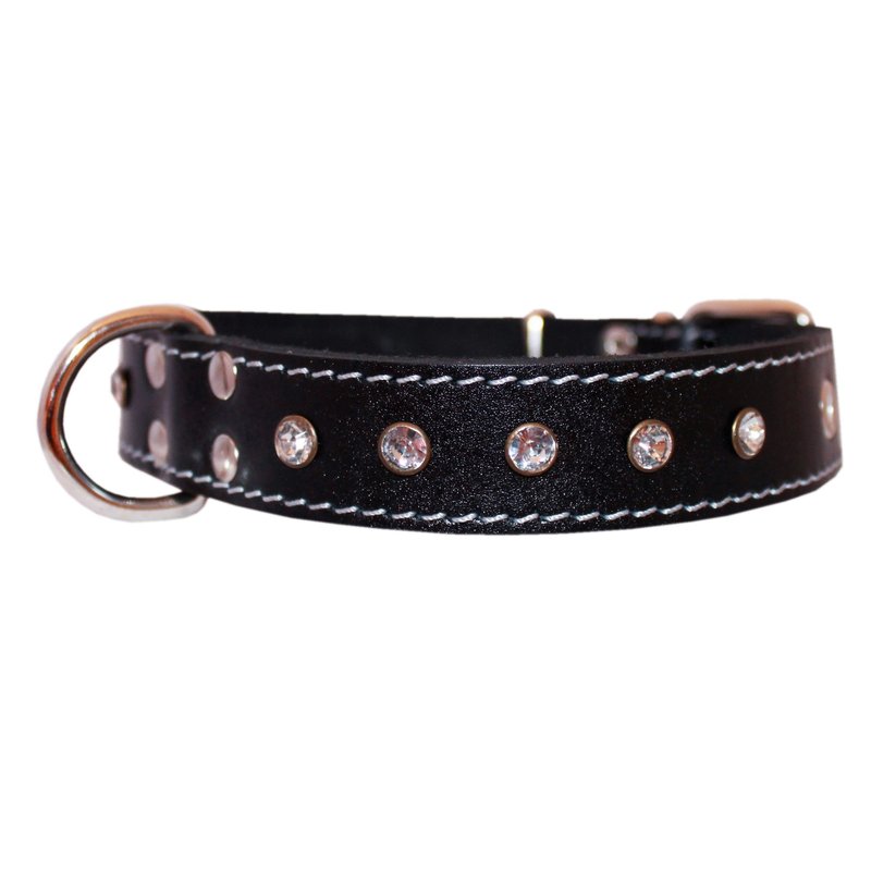 - Made of high quality genuine leather beautiful dog collar with one row of crystals