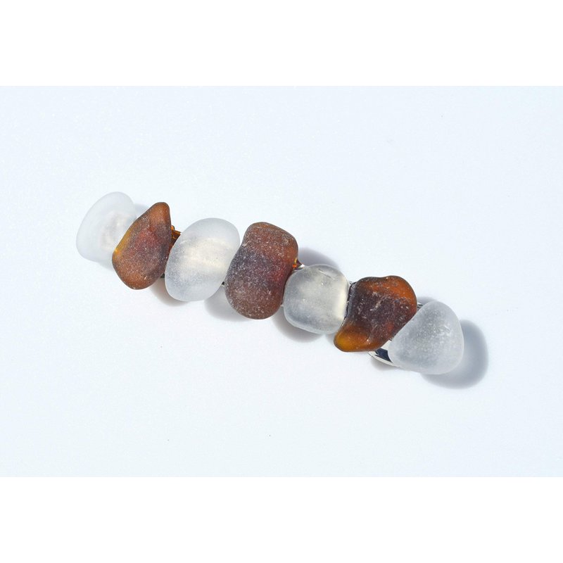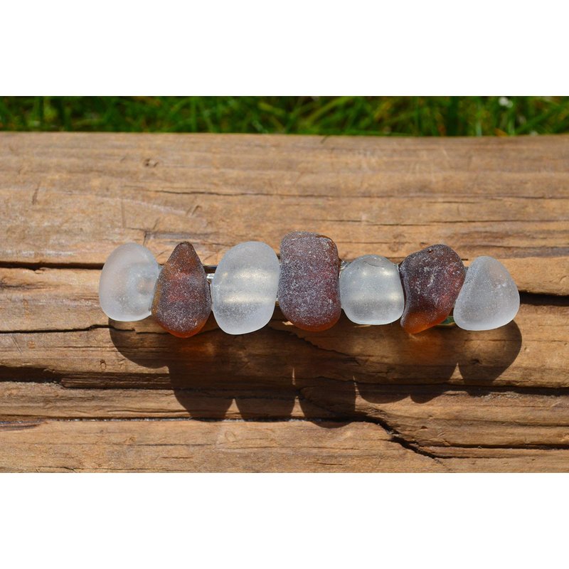 Genuine Brown and Frosted Sea Glass French Barrette Hair Clip