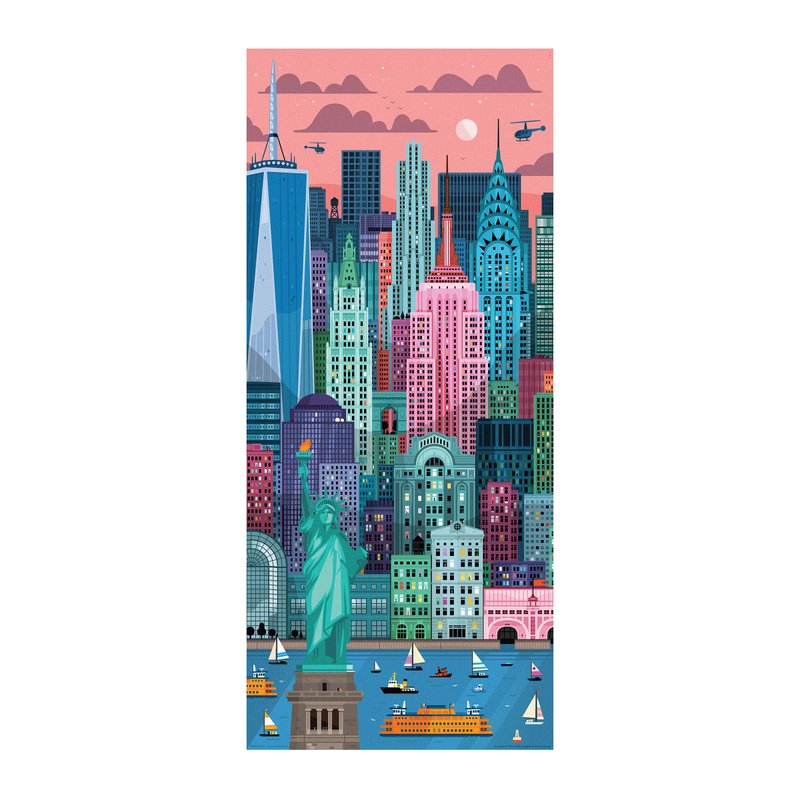 - 1000 PIECE PUZZLE: This large, 1000 piece puzzle measures 14 x 32 inches (35.5cm x 81cm) and features an original artwork by the Little Friends of Printmaking featuring the New York City skyline. A color insert of the art is included in each box.