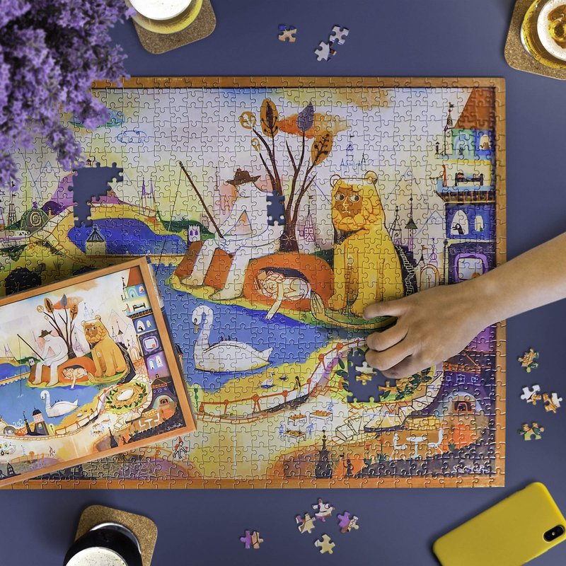 - 1000 PIECE PUZZLE: This large, 1000 piece puzzle measures 28 x 20 inches (71cm x 51cm) and features an original artwork by Souther Salazar. A full-color insert of the art is included in each box.