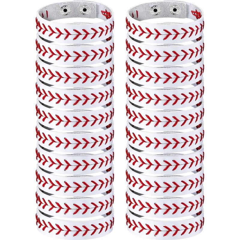 Genuine Leather Baseball Bracelet Baseball Wristbands Baseball Gifts for Boys Men Women Girls Baseball Players Sports Team (20 Pcs)