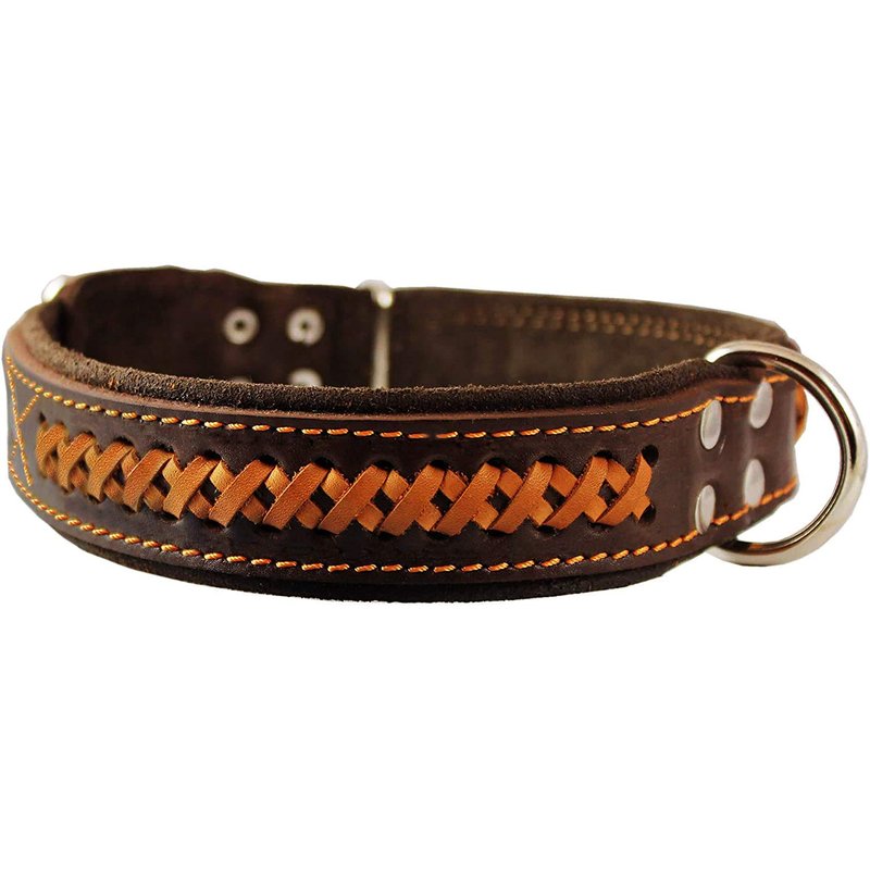 Genuine Leather Braided Dog Collar, Brown 1.5" Wide. Fits 17"-22" Neck.