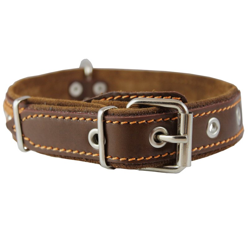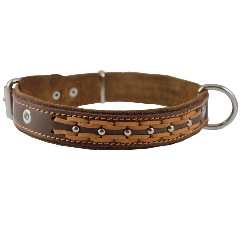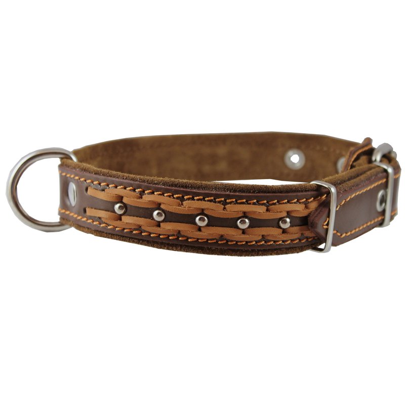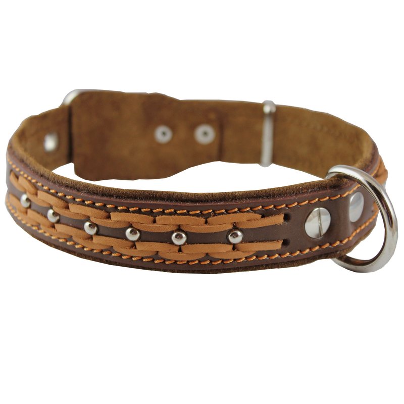 Genuine Leather Braided Studded Dog Collar, Brown 1.25" Wide. Fits 16"-20.5" Neck.