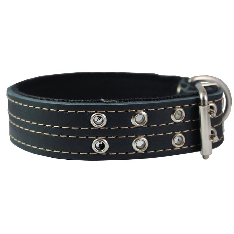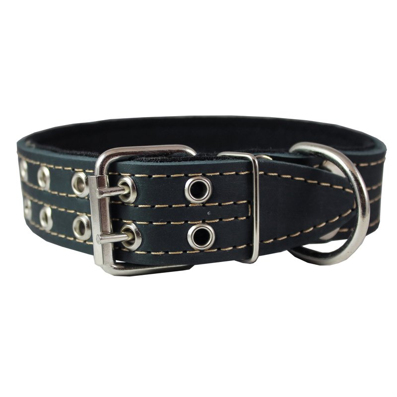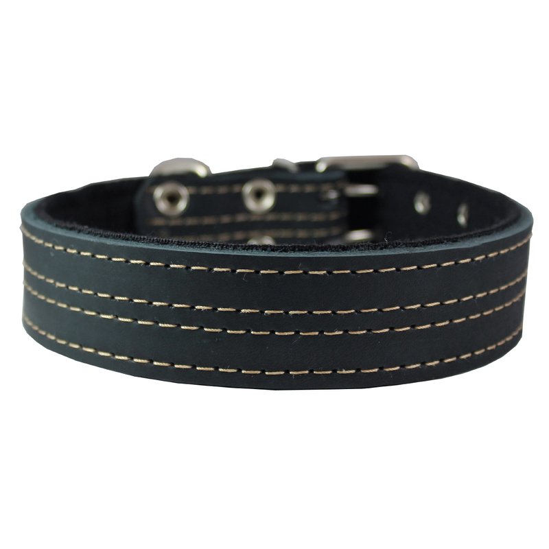 This durable dog collar is made of quality genuine leather. Padded with thick Cotton Web layer. Trimmed with contrast color stitching. Perfect collar for daily use, made to last.